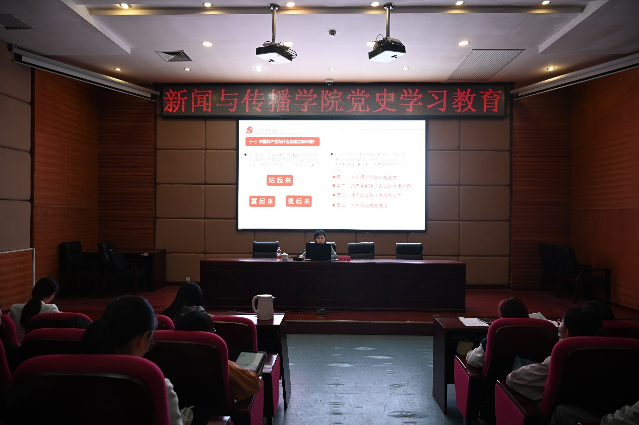 (二) 学党史讲党课 1. 程书记以“学史增信 坚定不移跟党走”为主题给学院分党校培训班的学员们授课 4月19日,学院党委书记程志红给学院分党校培训班的学员们上课,授课主题是“学史增信 坚定不移跟党走”,程书记通过一个个党史故事和具体事例,让同学们更深入的认识了青年人为什么要学党史,使同学们更全面的了解了中国共产党,开阔了同学们认识中国共产党的视野。