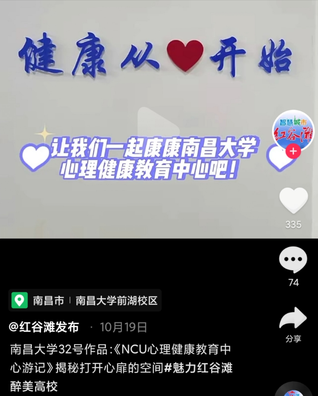 心理健康教育是提高大学生心理素质、促进其身心健康和谐发展的教育,是高校人才培养体系的重要组成部分,也是高校思想政治工作的重要内容。“闻樟园”系列作品除了展示科研人员的风采,还带领同学们游览了南昌大学心理健康教育中心,以“深入学生生活,打开学生心扉”为主题向同学们介绍了心理健康教育中心的环境与建设,展示了优秀的老师团队。镜头中展示的房间均是暖黄色的布置,温馨舒适、简洁大方,让学生深刻感受到了学校的人文关怀,彰显了南昌大学“育人育心”的教育理念。