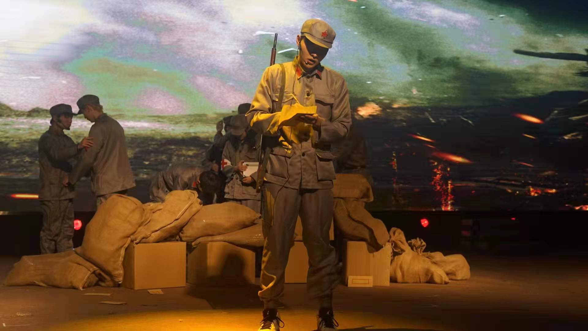 一、展现红的底色,传承红色基因 话剧《红的底色》共呈现五个场景,包括革命烈士方志敏同志在生死抉择之时,慷慨就义,用生命捍卫信仰;李志强收到一代名将陈毅安留给她的“无字家书”;革命烈士王尔琢以身许国,在战场上写下“革命不成功立誓不回家的”誓言;扶贫书记欧阳与妻子曾程的书信往来;南昌大学第一附属医院的护士在抗疫前线写给父亲的书信。话剧通过英雄们留下的红色书信串联起不同时代人们始终坚守的信仰与传承的力量,以彰显江西底色和家国情怀。