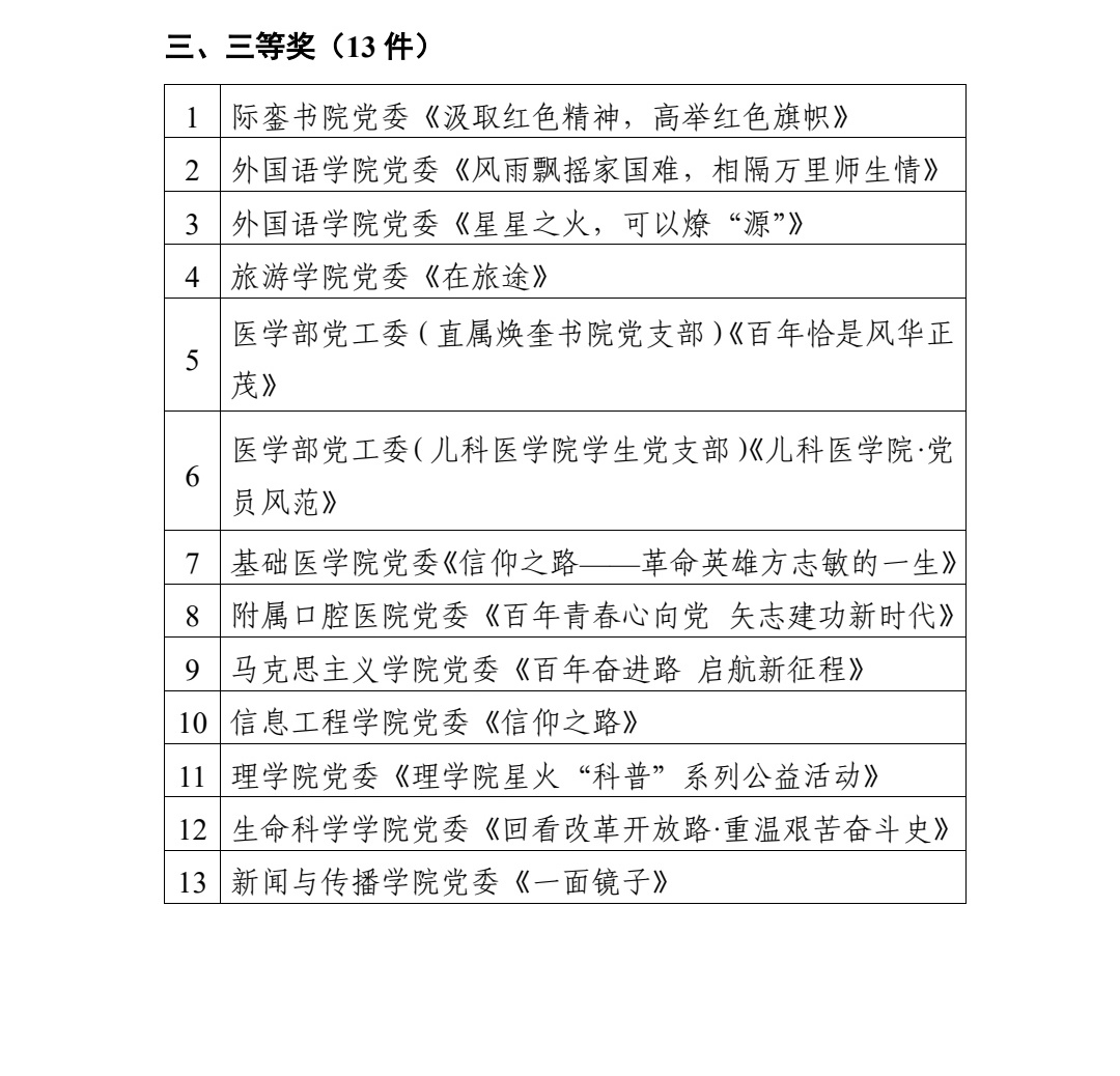 为生动讲述我校教育事业在党的领导下发生的巨大变革和取得的辉煌成就,集中展示新时代我校教育人的新使命新作为和一线师生党员的新担当新风采,南昌大学开展“庆祝建党100周年”党建微视频作品征集竞赛活动。此次活动中,必赢线路检测中心党委《青春向党奋斗有我——必赢线路检测中心开展党史学习教育赓续红色基因》、《一对兄弟的世纪情谊》荣获二等奖,必赢线路检测中心党委《一面镜子》荣获三等奖。