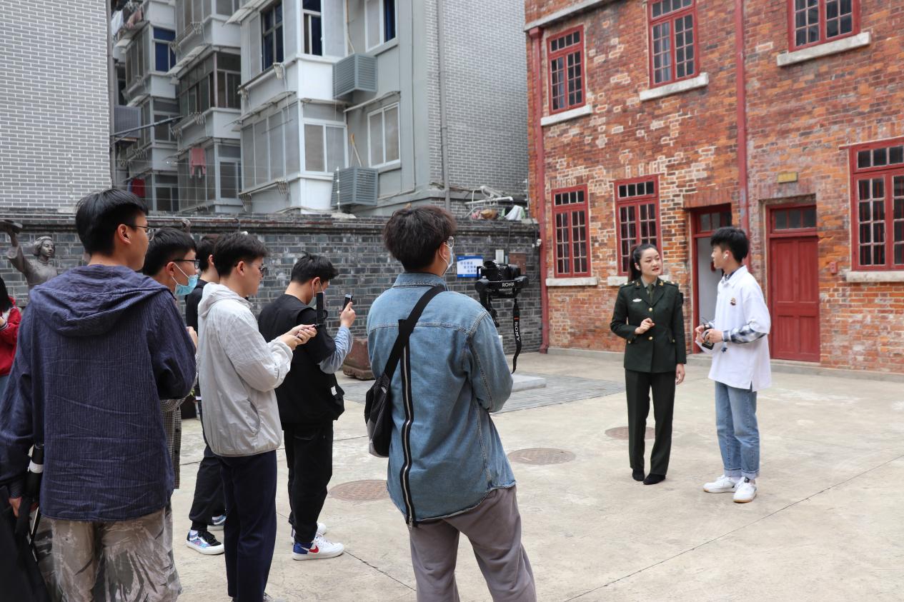 “直播党史故事”的第一站来到了南昌新四军军部旧址陈列馆,跟随讲解员和学生党员的直播线路,党员师生依次参观“浴血坚持”、“谈判改编”、“敌后抗战”、“完成使命”四部分展区,认真回顾了新四军从改编组建到东进抗日的铁军征程;漫步于两处革命遗址,大家不禁抚摸着民国古建的一砖一瓦,缮之精,虽历经百年风韵不减,让人生发时光回溯之感,仿佛那段厉兵秣马的抗战岁月就在眼前。在展馆外的红船前,播音专业的同学们深情诵读《红船的方向》,船虽小,但中国共产党的伟大事业从此起航。在展馆的宣誓墙前,党员师生面向党旗庄严宣誓,高亢的誓言久久回荡。